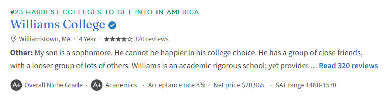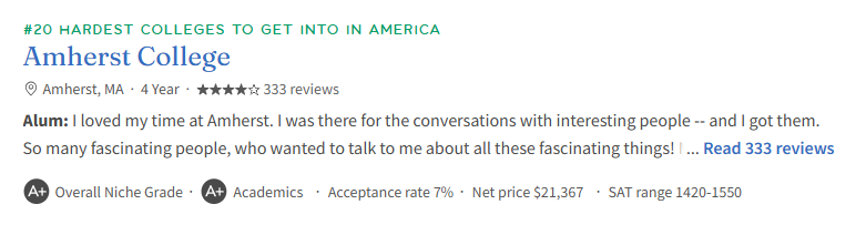 可以看到,这些文理学院的录取难度完全不逊于顶尖综合性大学!